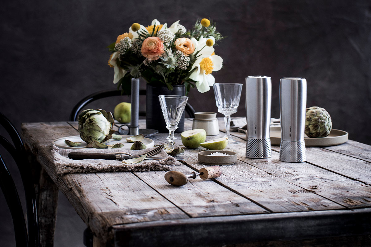 Ett elegant set med kryddkvarnar i rostfritt stål där du - tack vare Globals CrushGrind-kvarnverk- själv bestämmer hur fint eller grovt du vill mala. De ikoniska prickarna gör det enkelt att hålla koll: vita för salt, svarta för peppar. Stilrent, smart och redo att lyfta smaken vid varje måltid.