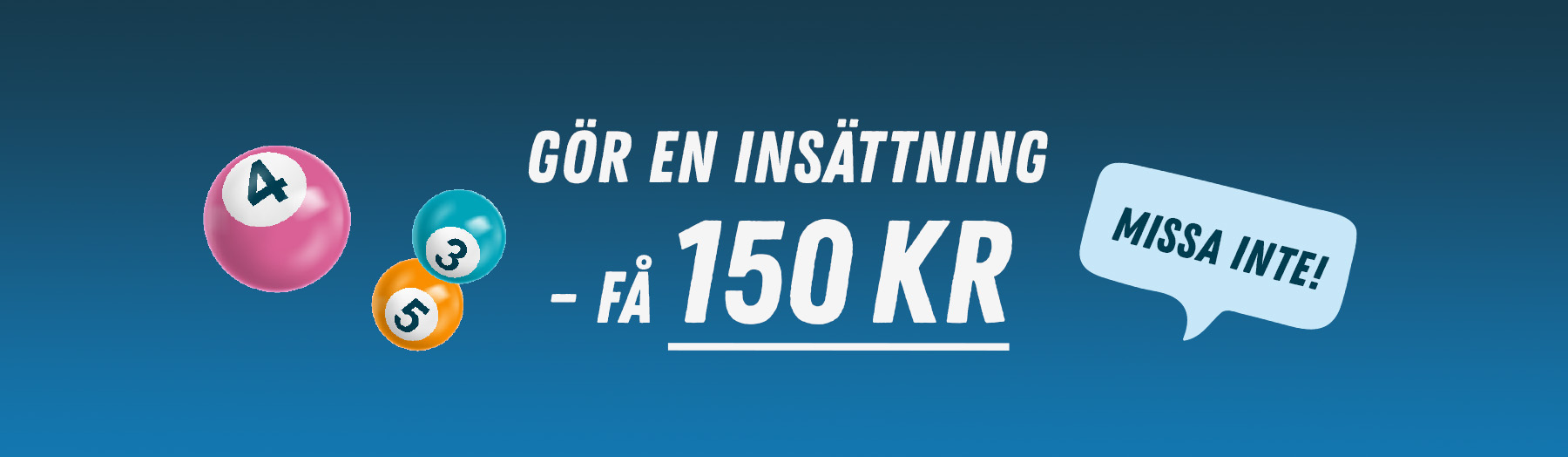 Erbjudandet gäller endast på din första insättning hos Miljonlotteriet. Du måste spela för kontanter för att få din bonus.