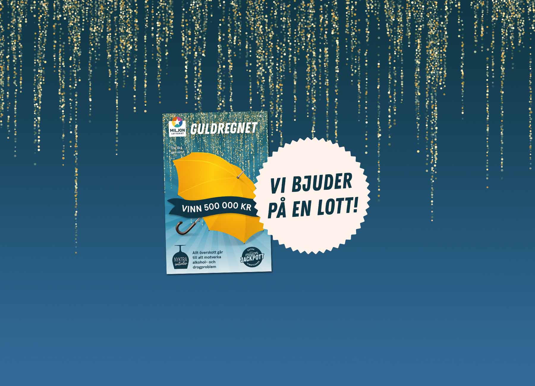 Fäll upp paraplyet, för här regnar det vinster! Guldregnet är vår nya lott med chansen att vinna upp till 500 000 kronor.