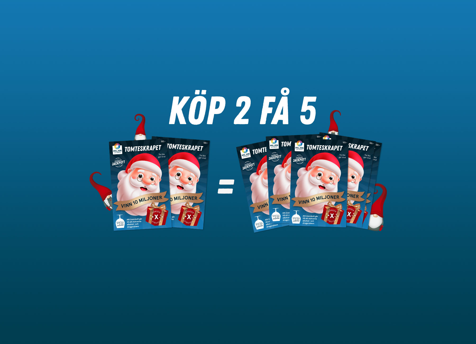 Det är sista chansen att köpa Tomteskrapet – och vi firar helgen med ett extra generöst erbjudande. När du köper 2 st. Tomteskrap (för 100 kr) bjuder vi på 3 st. extra Tomteskrap, värde 150 kr – WOW!