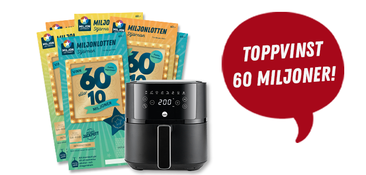 Erbjudandet gäller nya kunder. Airfryen skickas efter att du betalat ditt första lottpaket på 199 kr. Därefter kostar lotterna 360 kr/mån. Gäller så långt lagret räcker.