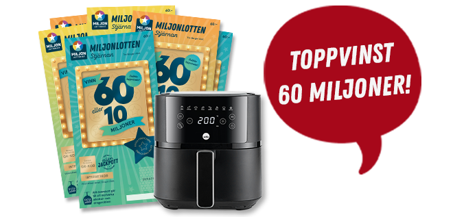 Tomten bjuder på rabatt! Köp 6 Miljonlotter för 199 kr och få en Wilfa Airfryer på köpet (värde 899 kr). Perfekt till jul- och nyårsmiddagen.