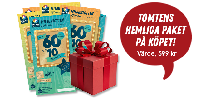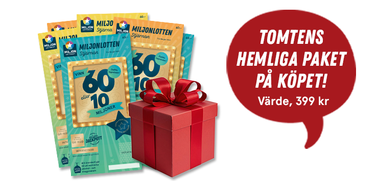 Ge december lite extra julmagi ✨ köp 6 Miljonlotter för 79 kr – och få Tomtens hemliga paket (värde 399 kr) på köpet!