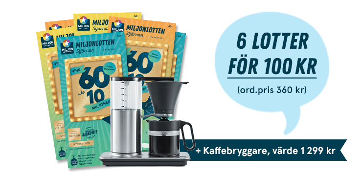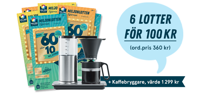 👑 6 Miljonlotter för 100 kr första månaden (ord. pris 360 kr)
