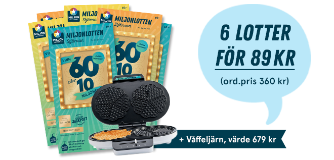 Erbjudandet gäller nya kunder så långt lagret räcker t.o.m. 29 mars 2026. Våffeljärnet skickas med ditt 2:a lottpaket.